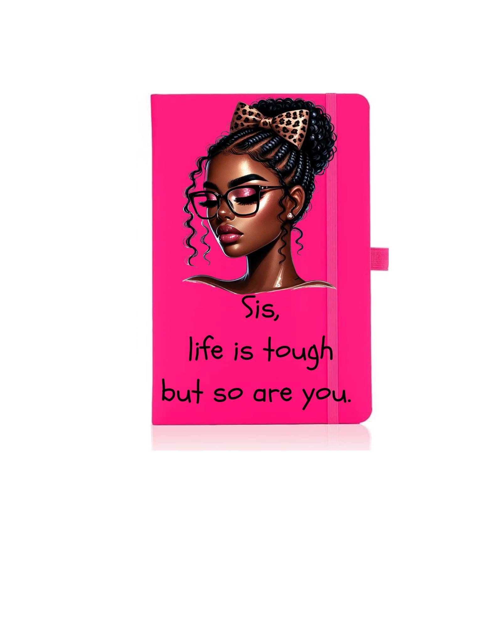 This hardcover journal features lined pages, an elastic band for secure closure, and a built-in pen holder. Perfect for notes, journaling, or daily planning—with a bold design that inspires confidence.